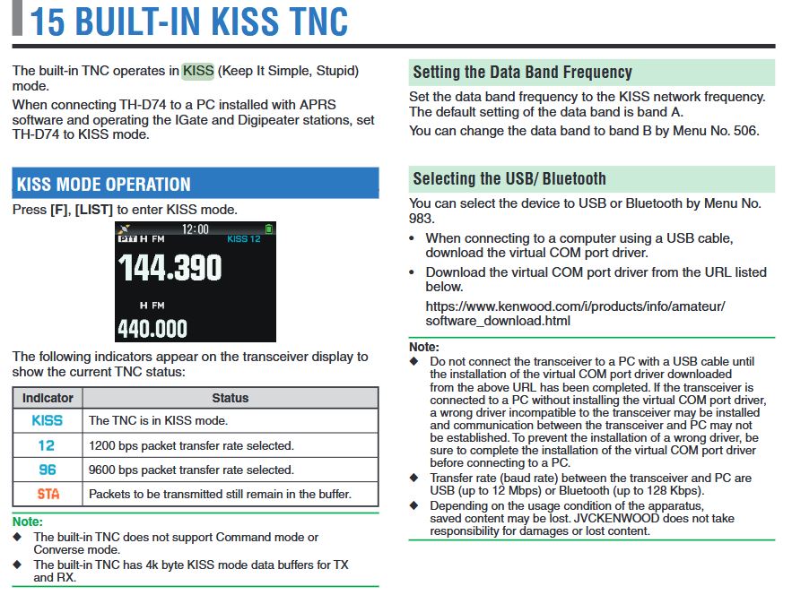 Kenwood TH-D74 WoAD Setup