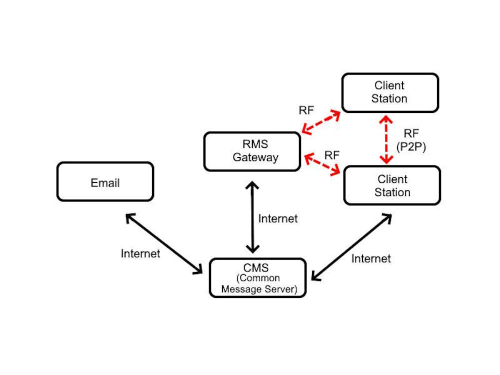 Radio Message Server (RMS) Gateway : RMS station that relay messages from Client Stations via RF to the Common Message Server via Internet and vice versa.